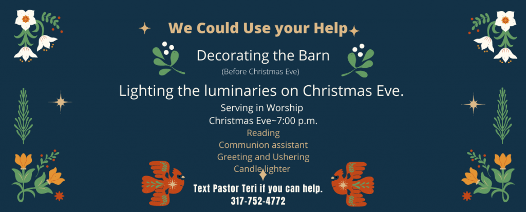 We could use some help making the barn festive for Christmas.